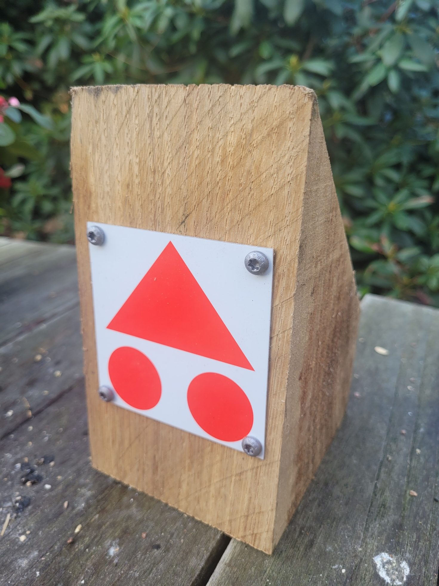 Wil je een mountainbiker verrassen met een origineel kado? Of wil je zelf wel een stukje mountainbikeroute in huis? Dan hebben wij een ingekorte versie van een originele routepaal voor je. Dezelfde eikenhouten palen die je overal in Nederland ziet van 10×10 cm, maar dan slechts 17 cm hoog. En erop gemonteerd het enige echte routebordje in rood. Alle routekleuren zijn beschikbaar. Ook zijn andere borden beschikbaar uit de standaardbebording voor mountainbikeroutes. Staat het bordje dat jij wilt hebben of geven er niet bij, neem dan contact op met patrick@trackstrails.nl.